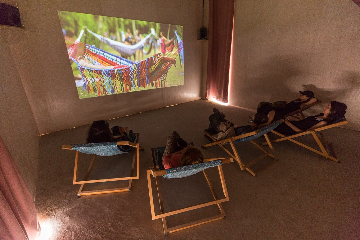 Installation view of Gozolândia / Cuckoo Land at Serralves Museum, Porto. Pavillion designed by FALA Atelier