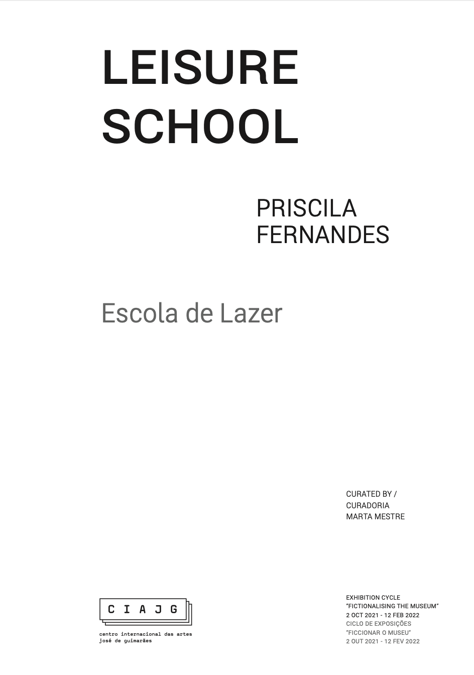 Publication about the solo exhibition LEISURE SCHOOL / ESCOLA DE LAZER at José de Guimarães International Arts Centre, with texts by Marta Mestre and Lars Bang Larsen. Eng/Pt