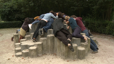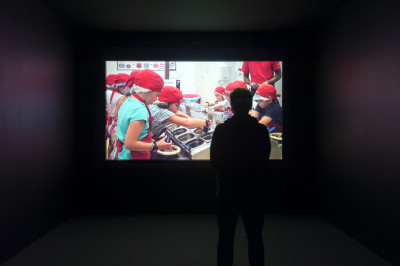 So leisure, it would seem, trails in the slipstream of play, more grown-up and no less conceptually multifaceted. However it belongs to the contemporary side of the story that play isn’t what it used to be. Arguably it is currently on the brink of exhaustion. This is a cultural condition that Fernandes has explored in her video For a Better World (2012) that documents a theme park for children in Lisbon where children can play at being grown-ups. It is a meltdown between the subjectivities of child and adult, capitalism and carnival, work and play: at Kidzania children work as a check-out assistant, firefighter, doctor or burger-flipper, to earn Kidzania-money to maintain the lifestyle they momentarily adopt in the playland, among copies of existing shopping and fast food chains, scaled down to kid-size. In Fernandes’s registering we see children jump down the rabbit hole of play to emerge in a corporate version of the adult world, where they over the course of a few hours play compacted sequences of work, shopping and leisure activities, all in the context of a capitalist utopia circumscribed by real-world branding. If leisure is somehow scripted by society – structured by work and punctuated with happy endings – then Kidzania is leisure eating its way into play.