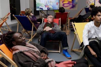 Finding pleasure in leisure calls for true, unbounded creativity, one that thinks and plays with the body. One of the works quoted by Fernandes in Never Touch the Ground is Hélio Oiticica’s piece of vitalist concretism Metaesquema no. 348 (1958). Later, Oiticica would propose the neologism ‘creleisure’, a pun on leisure and crear (to create), and crer (to believe), that denotes a kind of production of desire inherent to creativity that transgresses a normal valorization between states of productivity and non-productivity. In this strange way, laziness becomes a paradigm for aesthetic production and reception: “Not to occupy a specific place, in space and in time, as well as to live pleasure or not to know the time of laziness is and can be the activity to which a ‘creator’ may dedicate himself,” Oiticica writes in the rambling essay “CRELEISURE” (1969). Later he would create works that aptly support Fernandes’s hypothesis of a physically suspended art, in his installation series Cosmococas (1973), a ‘quasi-cinema’ that with slide shows of cocaine drawings offer pockets of time and space where reality principles are put in abeyance, suspending viewers’ bodies in hammocks or a swimming pool, disconnected from the passing of time: Sabeth Buchmann nicely calls Oiticica’s take on it a ‘deviant re-sublimation’, a concept of leisure that overshoots (or deliberately shoots down) its economical functionality and instead sets it to work in queer and socially dissonant registers.
