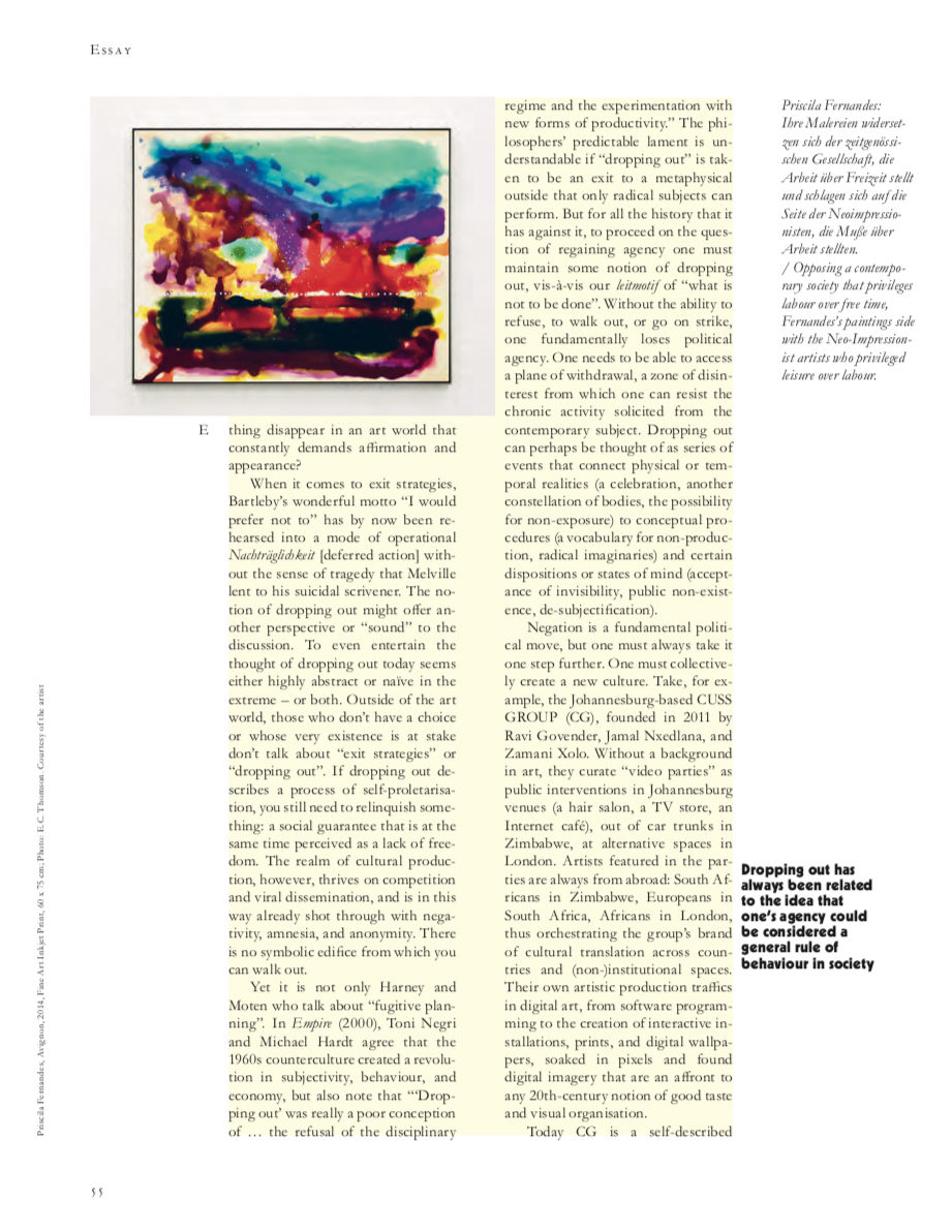 This is the Time. This is the Record of the Time, is a publication and exhibition catalogue edited by Angela Harutyunyan and Nat Muller. The book combines theoretical interventions on conceptions of time and temporality by several scholars – including Rico Franses and Ray Brassier – with artistic propositions on its representations and records. Following a collaborative exhibition and public program at the Stedelijk Bureau Amsterdam and the AUB Art Galleries in the framework of Stedelijk Museum’s Global Collaborations program in 2014-15, the publication is both a record of the project and a renewed invitation to think of time in the midst of tectonic geopolitical, social, and cultural shifts. With contributions by Kristina Benjocki, Sebastián Díaz Morales, Peter Fengler, Priscila Fernandes, Daniele Genadry, Walid Sadek, Rayyane Tabet, Esmé Valk, and Cynthia Zaven. Read an excerpt of Priscila's text here.